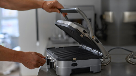 «Для сэндвичей и овощей подойдут более компактные модели с минимальными настройками и средней температурой. Если вы часто жарите мясо или рыбу, особенно в виде стейков, то без высокой температуры (от 200 °C и выше) и плотного прижима панелей не обойтись. Желательно, чтобы устройство позволяло точно настраивать температуру и равномерно прогревало обе стороны продукта. Такие функции делают прибор универсальным: утром — сэндвичи, вечером — рыба, на выходных — овощи-гриль или мясо», — поясняет Дмитрий Дубасов.