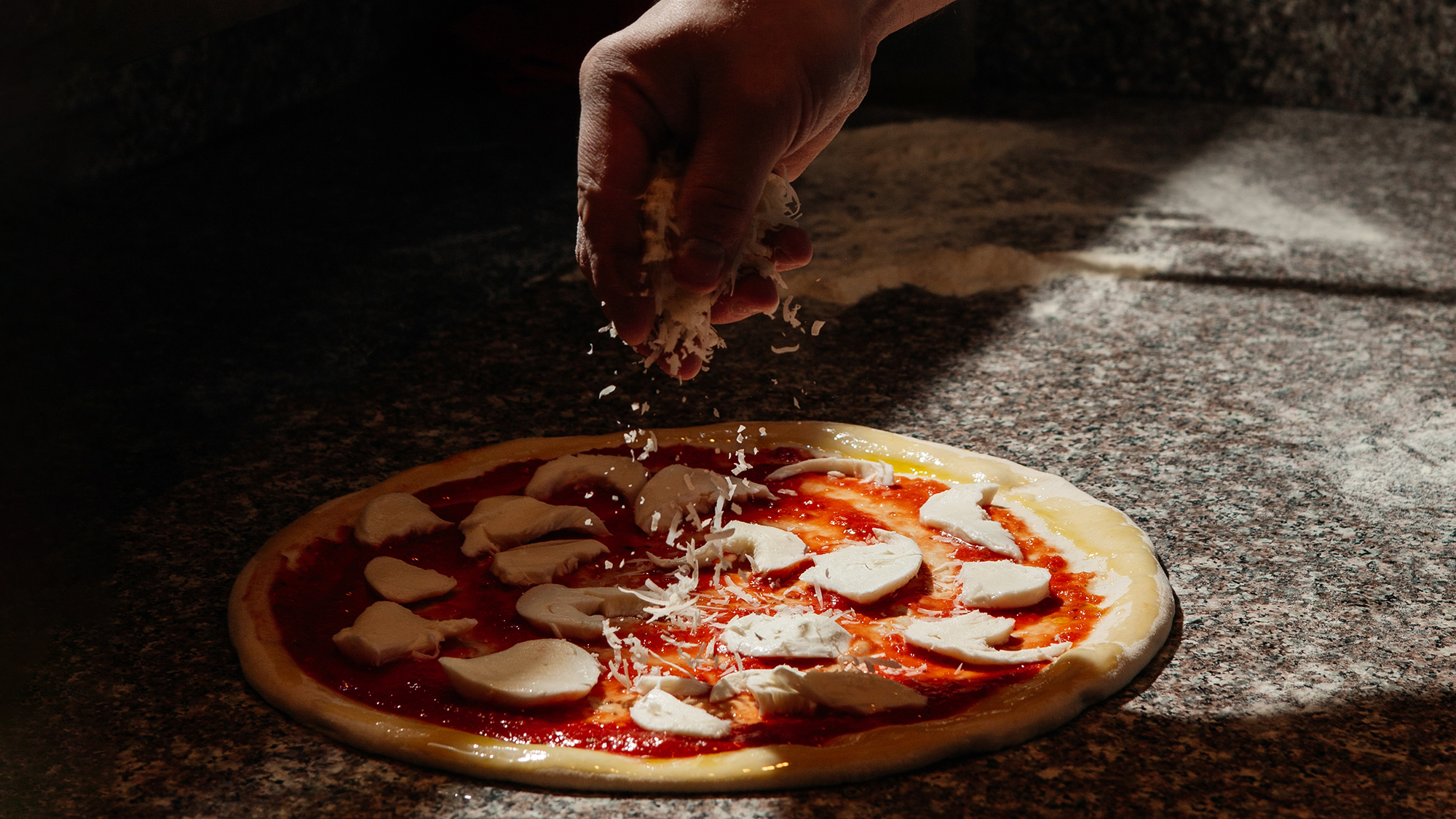 «Повышенная плотность, упругость и солоноватый вкус пиццовой моцареллы — это результат её выдержки и особой технологии производства. Как и любой сыр, моцарелла созревает, что и придаёт ей более насыщенный цвет, вкус и плотную текстуру», — объясняет шеф-повар.