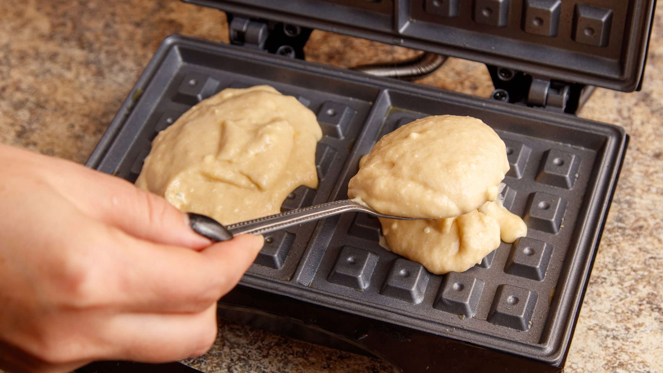 Вафли готовятся быстро и просто. Замесил жидкое тесто и пеки — главное, чтобы под рукой была удобная вафельница.