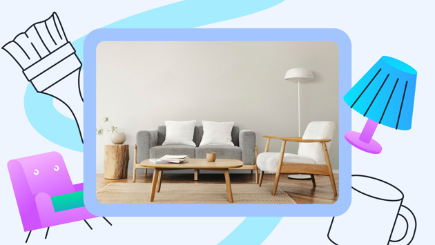 Выбирайте мебель с простыми геометрическими силуэтами, чёткими линиями и без сложных декоративных элементов из дерева, металла, стекла или камня. По цвету лучше придерживаться спокойных монохромных оттенков, пастельных или натуральных тонов, которые будут гармонично сочетаться с фактурой основного материала.