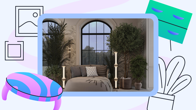 - Живые растения в неоклассике — это крупные объекты. В этот стиль отлично впишутся крупные фикусы, монстеры, пальмы в эффектных объёмных кашпо. Их важно превратить в объект декора, а не прятать за занавесками, поближе к свету. Растения лучше расставлять парами по сторонам от окон, комодов, диванов или столов. Небольшие растения, если они уже есть, стоит пересадить в элегантные горшочки и также выставить напоказ — пусть они станут частью декоративной композиции из подсвечников на комоде или дополнят светильник на прикроватной тумбе.