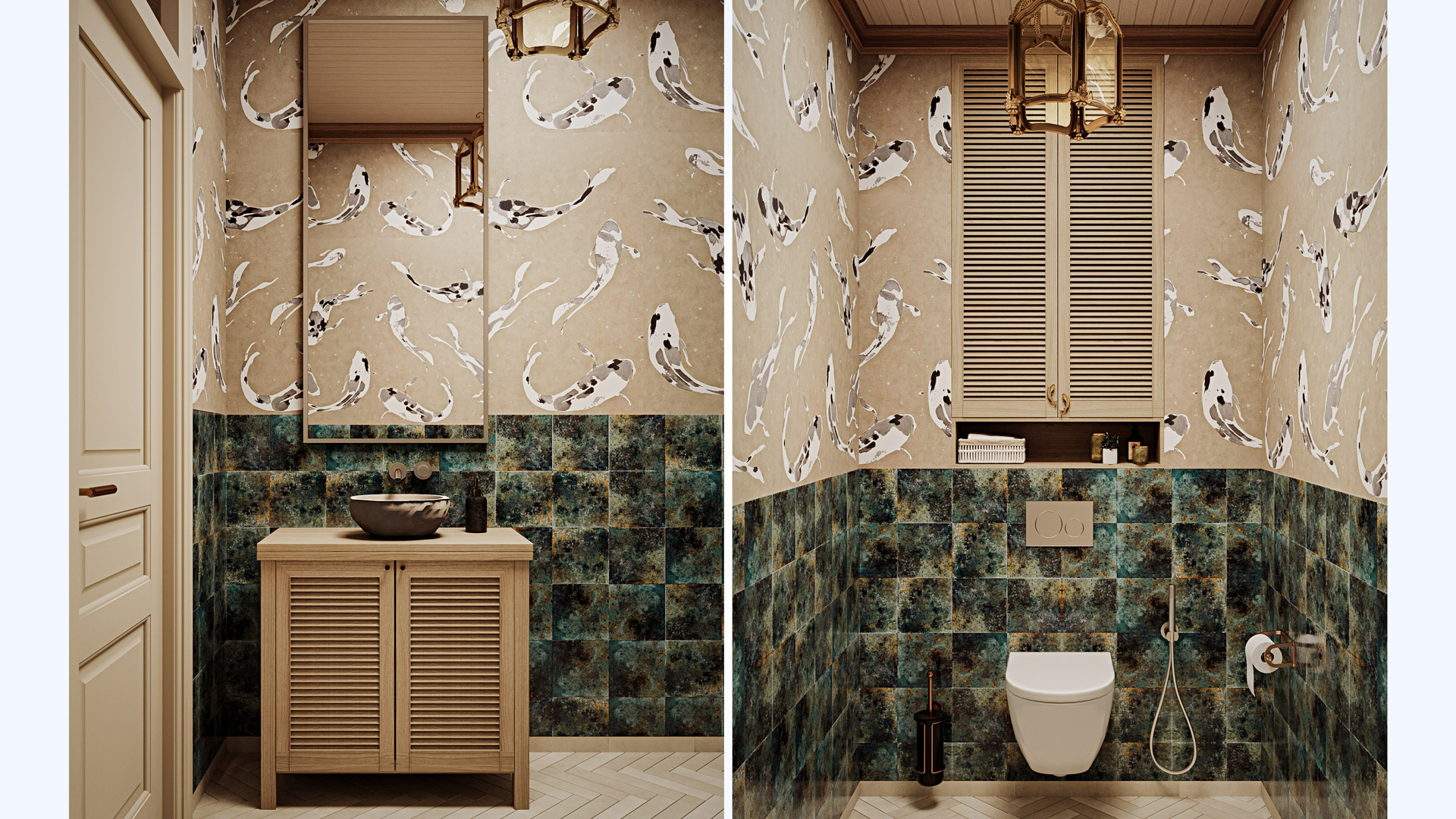 «В одном из наших проектов мы поклеили обои с цветочным принтом внутрь шкафа в спальне. Такой приём делает функциональную зону неожиданно декоративной и придаёт глубину пространству. А в другом проекте использовали обои с нарисованными рыбами в туалете, чтобы сделать интерьер более выразительным. Такие вещи оживляют пространство и добавляют элемент неожиданности в повседневную зону», — говорит Екатерина Мищенко.