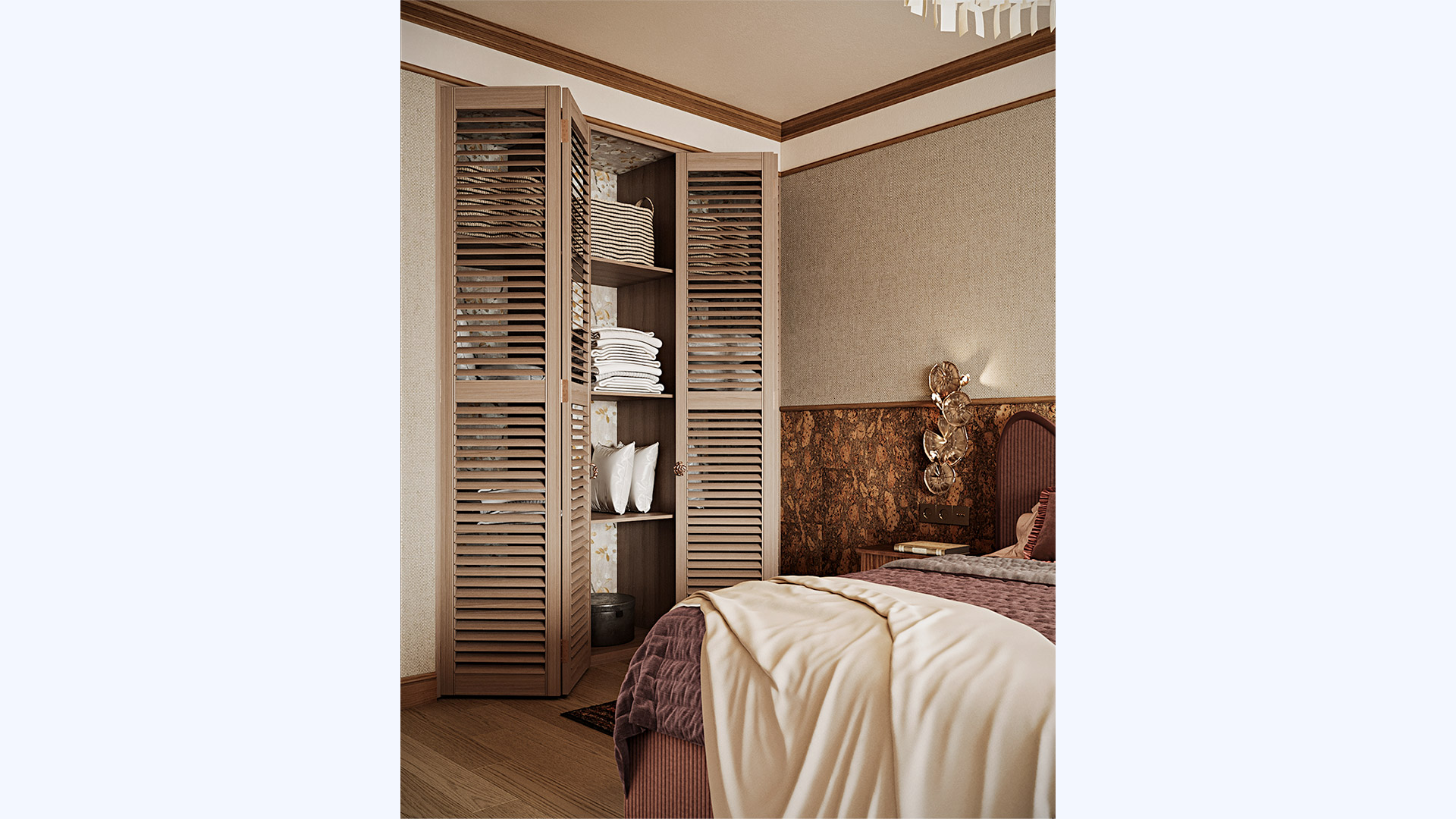 «Отдельно стоит отметить шпонированные обои, когда верхний слой выполнен из шпона дерева. Это тренд последних лет, и он прекрасно работает в премиальном сегменте. Шпон не только создаёт эффект дорогого материала на стене, но и очень удобен в монтаже, особенно на радиусных стенах, где он повторяет изгибы без швов и добавляет интерьеру пластики», — поясняет Екатерина Мищенко.