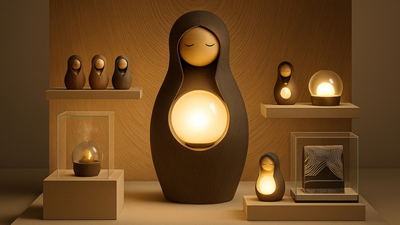 Дизайнер Вера Дикушкина представила на конкурс русских многофункциональных матрёшек в японском современном минималистичном стиле Shizuka, которые были спроектированы для ульяновского АО «УМЗ». Это не народная игрушка, а полноценный арт-объект, который буквально вмещает в себя светильник, аромадиффузор или акустическую колонку. Центральная сфера — «сердце» матрёшки — это модульная деталь, которая позволяет легко менять назначение предмета. Можно установить светильник с мягкой LED-подсветкой с эффектом «дыхания», когда свет колышется в ритме вдох — выдох, полупрозрачную сферу с резервуаром для ароматизации помещения или универсальный динамик.