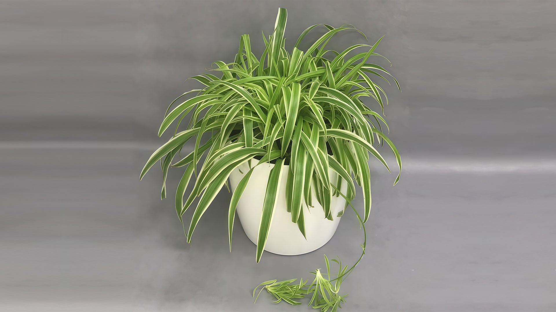 Изящные зелёные или полосатые листья хлорофитума образуют красивый пышный фонтан. Такое растение не только радует глаз, но и активно очищает воздух от вредных веществ.