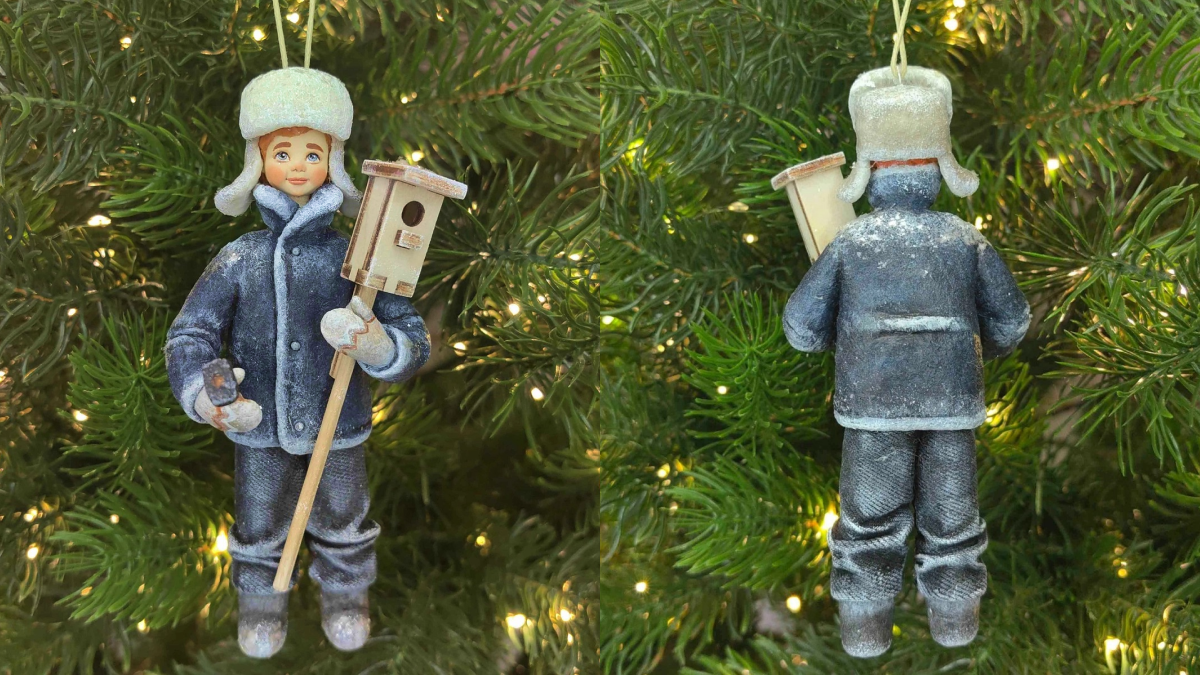 Ватная игрушка, выполненная по старинной технологии, — редкий и очень трогательный формат от подмосковной «Фермы Радости». Мальчик со скворечником словно сошёл с кадра старого фильма. Это не просто украшение, а сентиментальный подарок с настроением тихого, домашнего Нового года.