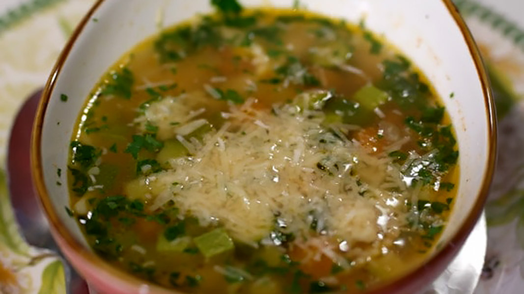 Самый простой рецепт — это знаменитый итальянский минестроне из сезонных овощей. В версии Юлии Высоцкой он адаптирован для русской кухни — в составе появились чеснок и петрушка, а для сытности добавлены макароны.