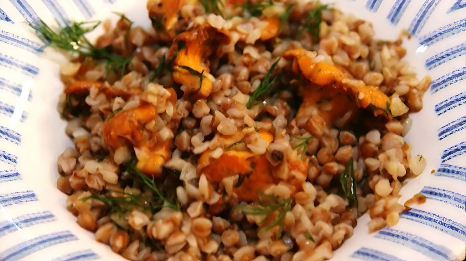 Гречка с грибами, луком и укропом