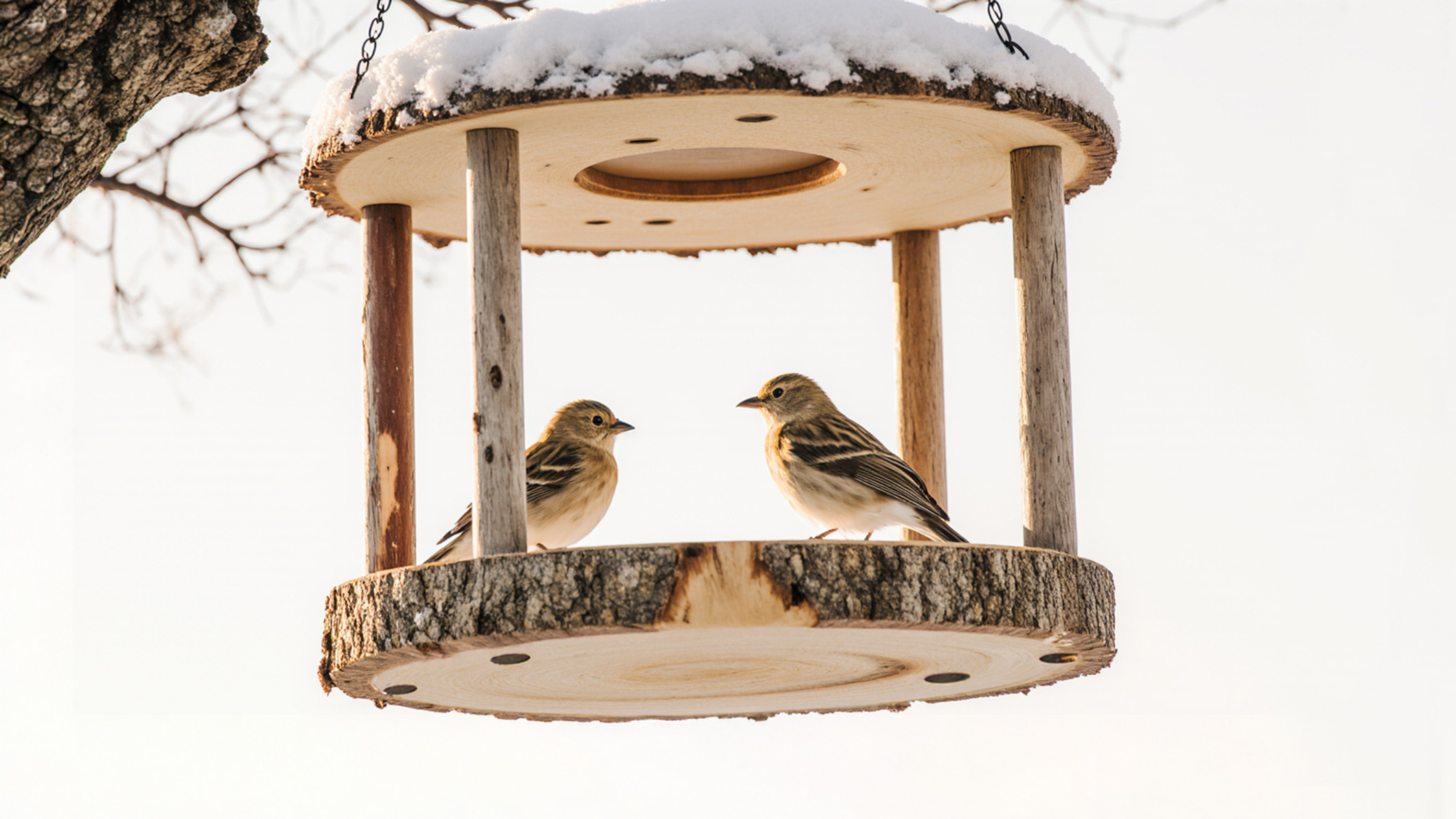 Этот вариант — самый сложный в изготовлении, но он прослужит долго и при этом не навредит птицам и природе. Вместо спилов можно использовать квадратные или прямоугольные куски фанеры.