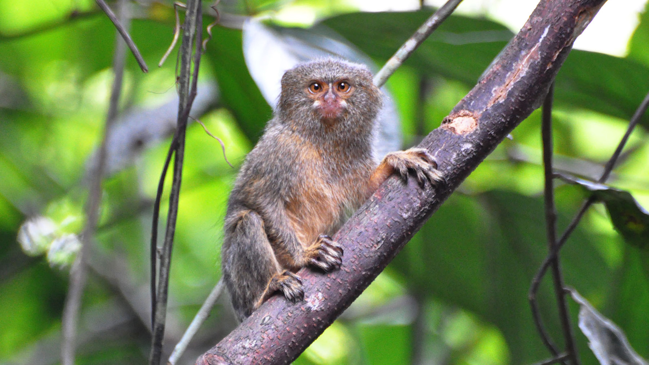 Карликовая игрунка — самая маленькая обезьяна в мире. Взрослая особь вырастает примерно до 14 см и весит чуть больше 100 г, а новорождённый детёныш настолько крошечный, что похож на головку зубной щётки. Такой размер помогает животному прятаться в густых зарослях тропического леса. Особые зубы и когти вместо ногтей (кроме большого пальца) позволяют игрункам цепляться за стволы и выдалбливать в коре аккуратные отверстия, из которых они часами слизывают древесный сок — один из ключевых продуктов их рациона наряду с насекомыми и фруктами.