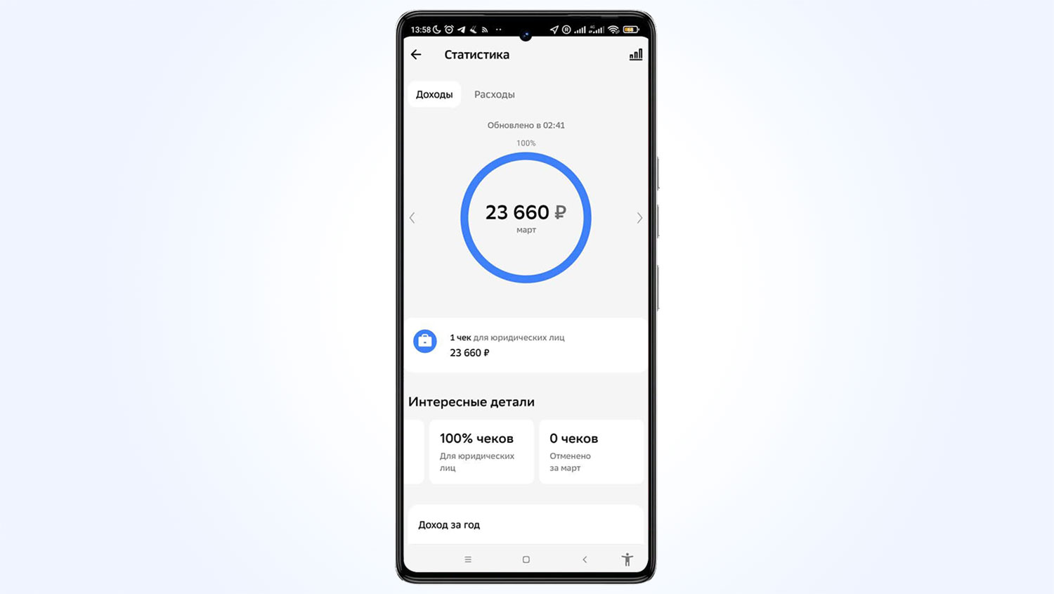 В сервисе пользователь видит все данные по доходам и расходам, список сформированных чеков и выставленных счетов. А в разделе «Статистика» легко сравнить доходы и расходы за разные периоды — от месяца до года. Также в сервисе удобно отслеживать, от кого, когда и какая сумма поступила.