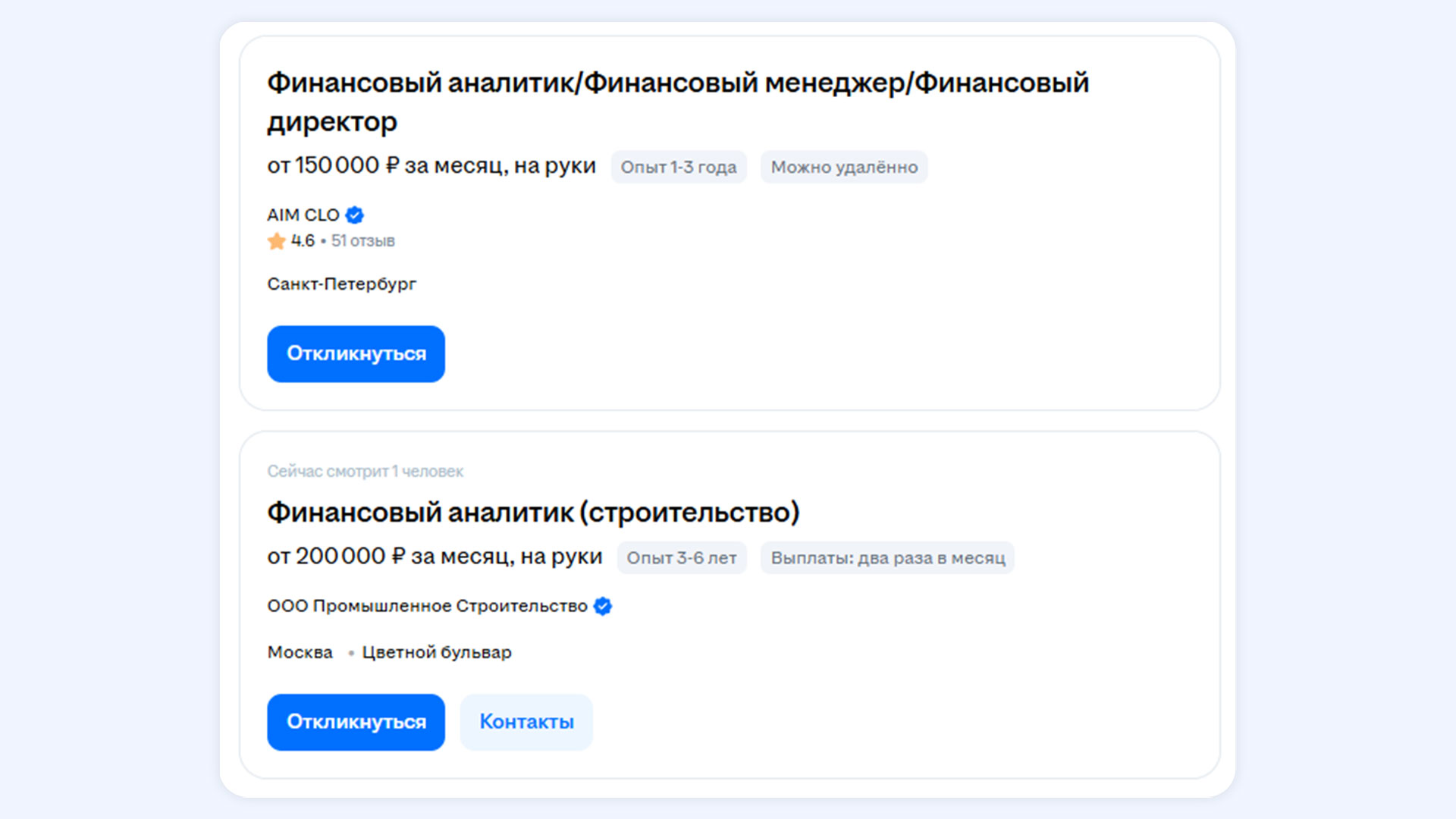 Сколько можно заработать: от 100 000 рублей и выше, в зависимости от опыта, квалификации, объёмов работы и размера компании. Доход опытных финансовых аналитиков в столичных корпорациях может превышать 200 000–300 000 рублей.