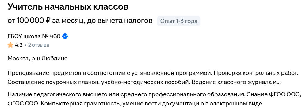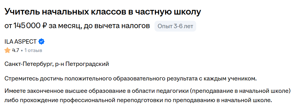На момент выхода статьи на hh.ru было размещено 14 593 вакансии учителя по всей России. Самые большие зарплаты предлагают в Москве и Санкт-Петербурге, в том числе в частных школах.