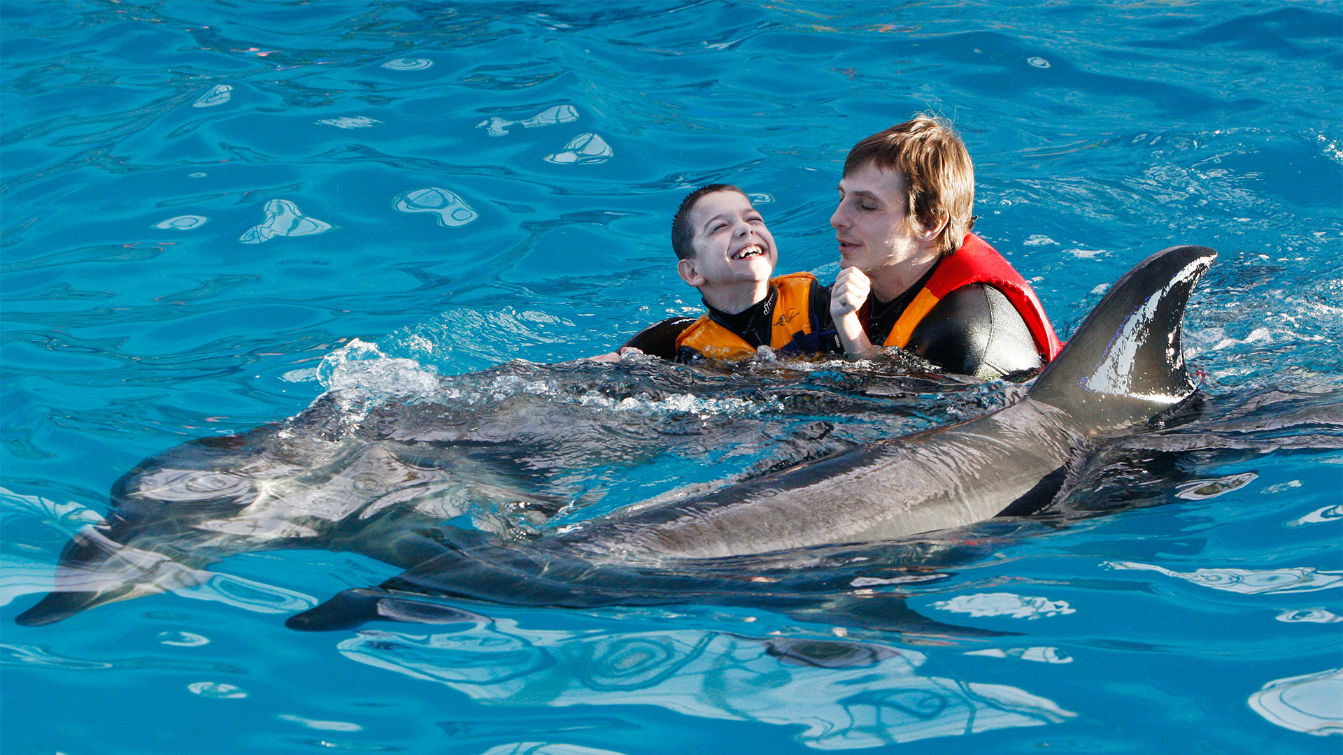 Дельфинотерапия — вид медико-психологической помощи, который подразумевает взаимодействие человека и дельфина в форме игры или выполнения специальных упражнений. Плавание с дельфинами широко применяется у детей старше трёх лет с задержкой речевого и психического развития, расстройством аутистического спектра, синдромом дефицита внимания и гиперактивности, с детским церебральным параличом, нейросенсорной тугоухостью и другими заболеваниями.