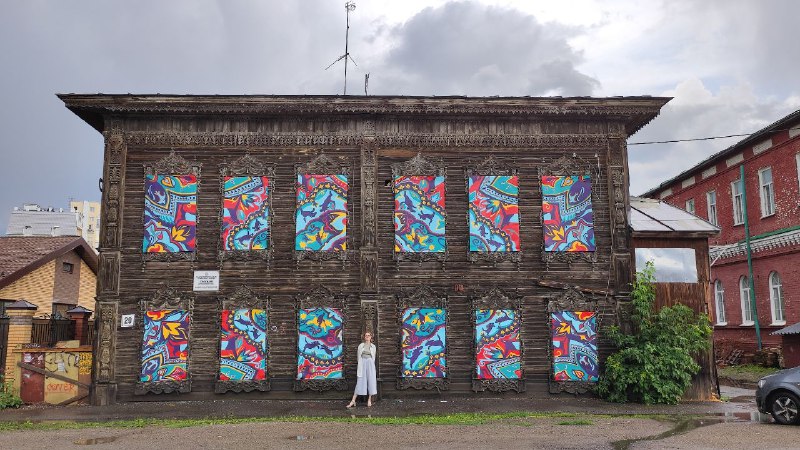 Художница участвовала в проекте арт-консервации старинных деревянных домов, которые расселили и заколотили. Нужно было нарисовать смысловые картинки на досках, которые потом разместили на зданиях, чтобы оживить постройки и обратить на них внимание.