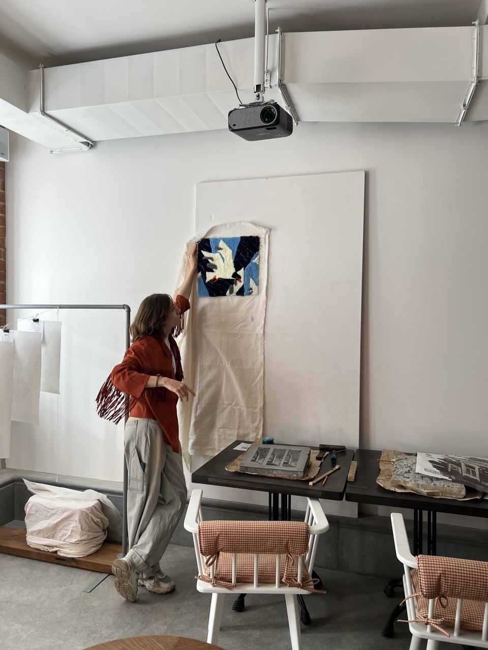 Сейчас Анна предпочитает работать в смешанных техниках и с разными материалами. Она не только рисует: иногда работает иллюстратором, создаёт аппликации и делает тафтинговые ковры — когда с помощью специального пистолета набивают пучки пряжи в тканевую основу. Параллельно она преподаёт детям и студентам, а также проводит мастер-классы и индивидуальные консультации. Чтобы всё успевать, Анна ведёт учёт задач и пользуется дашборд-доской для заметок. Рисовать для себя получается только в перерывах между работами.
