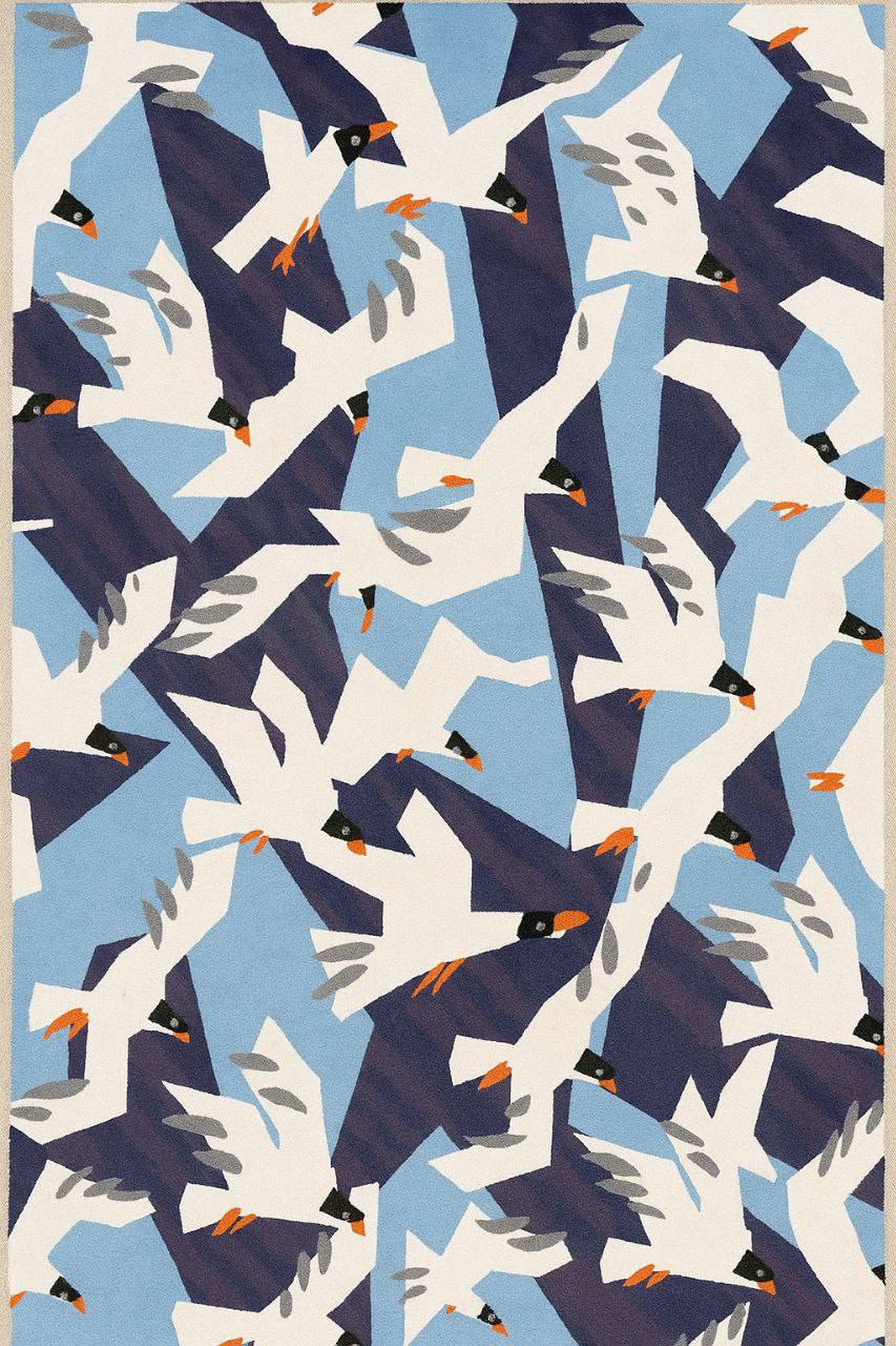 «Мне заказали большой ковёр с полярными крачками. Раньше в здании, где находится общепит, жил путешественник и исследователь Арктики Николай Урванцев. Заказчик хотел отдать дань памяти этому человеку и при этом связать его с названием бистро. Также ему нравилась стилистика периода "оттепели". Я погрузилась в задачу: начала изучать эпоху и произведения того времени, смотреть стилистические решения тогдашних художников, реализованные творческие проекты и читать о самом Урванцеве. Параллельно я узнала, что полярные крачки преодолевают самый большой путь при миграции: это единственная в мире птица, которая ежегодно мигрирует из Арктики в Антарктиду и обратно. Из всего этого и родилась концепция ковра. Ко мне пришли простые образы, но чтобы дойти до них, пришлось пройти длинный путь», — рассказывает Анна.
