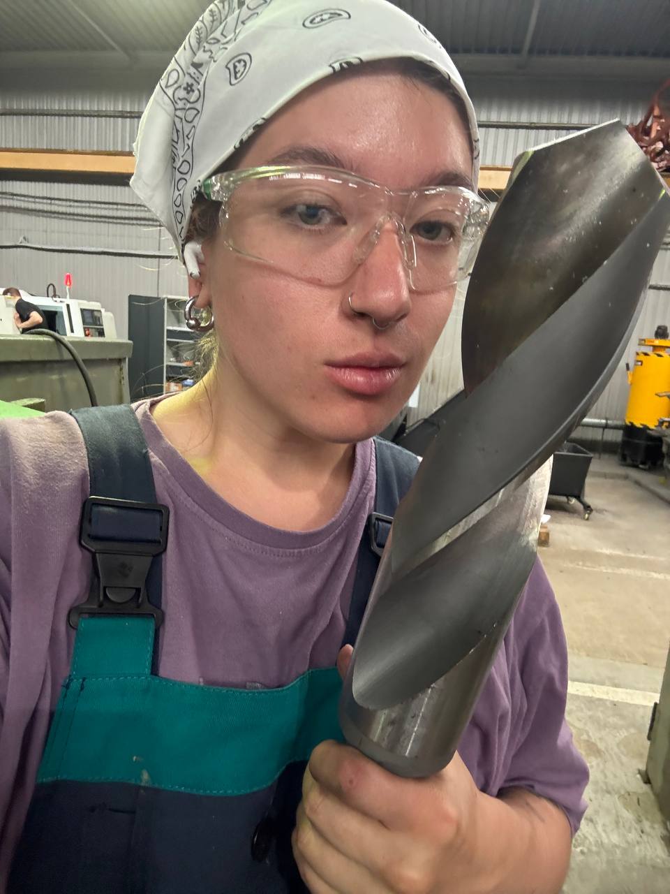 Во время работы по технике безопасности нужно надевать специальные очки, чтобы искры и металлические стружки не попадали в глаза. Однако, по словам Анастасии, нередко они летят на кожу лица и шеи и оставляют небольшие ожоги и ссадины. Ничего страшного в этом нет, но бывает неприятно. А ещё в цехах шумно и пыльно, но к этому девушка уже привыкла.