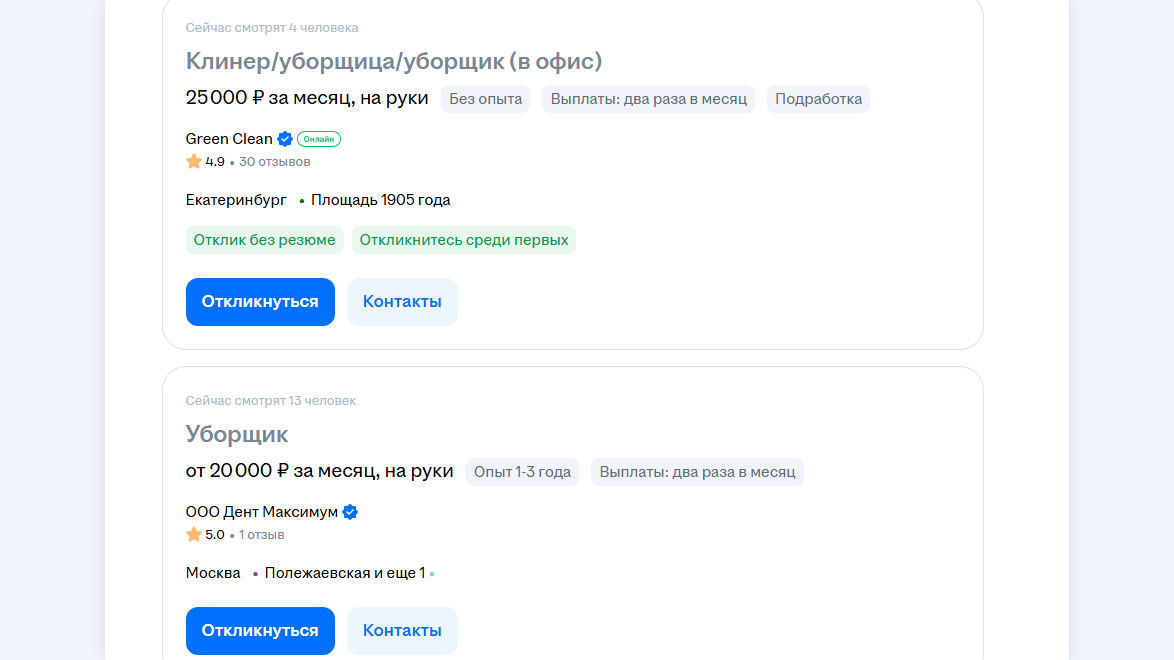 Например, уборщицы нужны практически везде: в ресторанах, школах, поликлиниках, магазинах и офисах. Платят им в среднем от 15 000 до 30 000 в месяц за работу в вечерние смены.