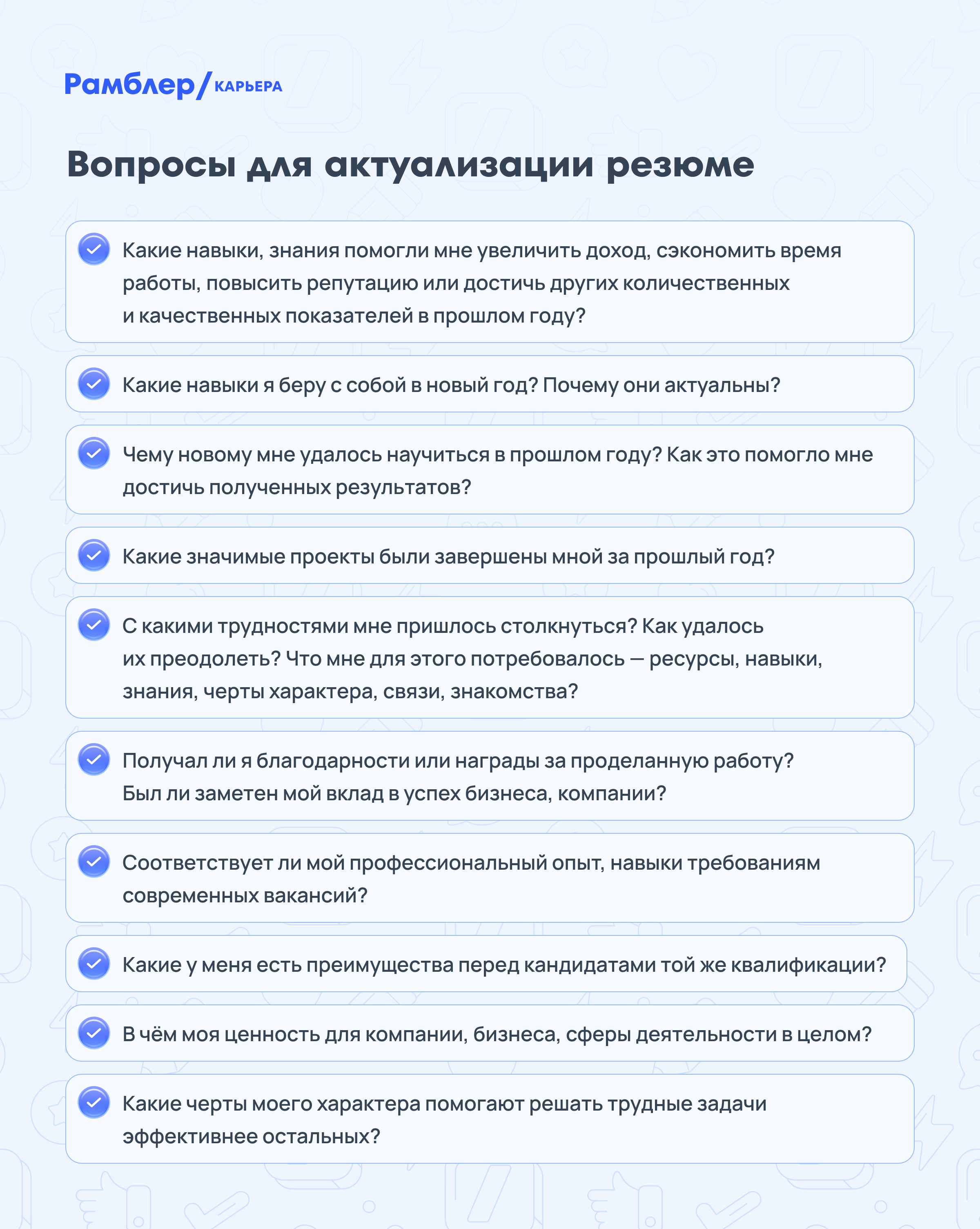 Чек-лист вопросов для актуализации резюме