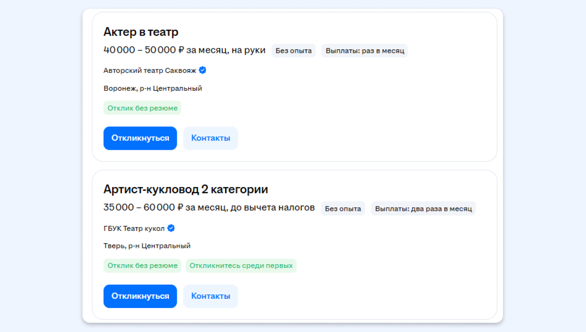 В регионах зарплаты начинаются от 35 000–40 000 рублей, в Москве и Санкт-Петербурге могут быть в два-три раза выше. У известных артистов столичных театров доход достигает 200 000–300 000 рублей в месяц и более.