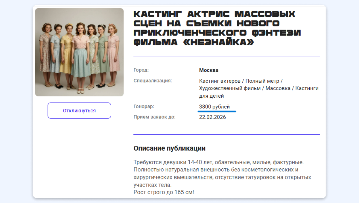 - Молодые артисты нередко соглашаются на скромные ставки ради опыта.