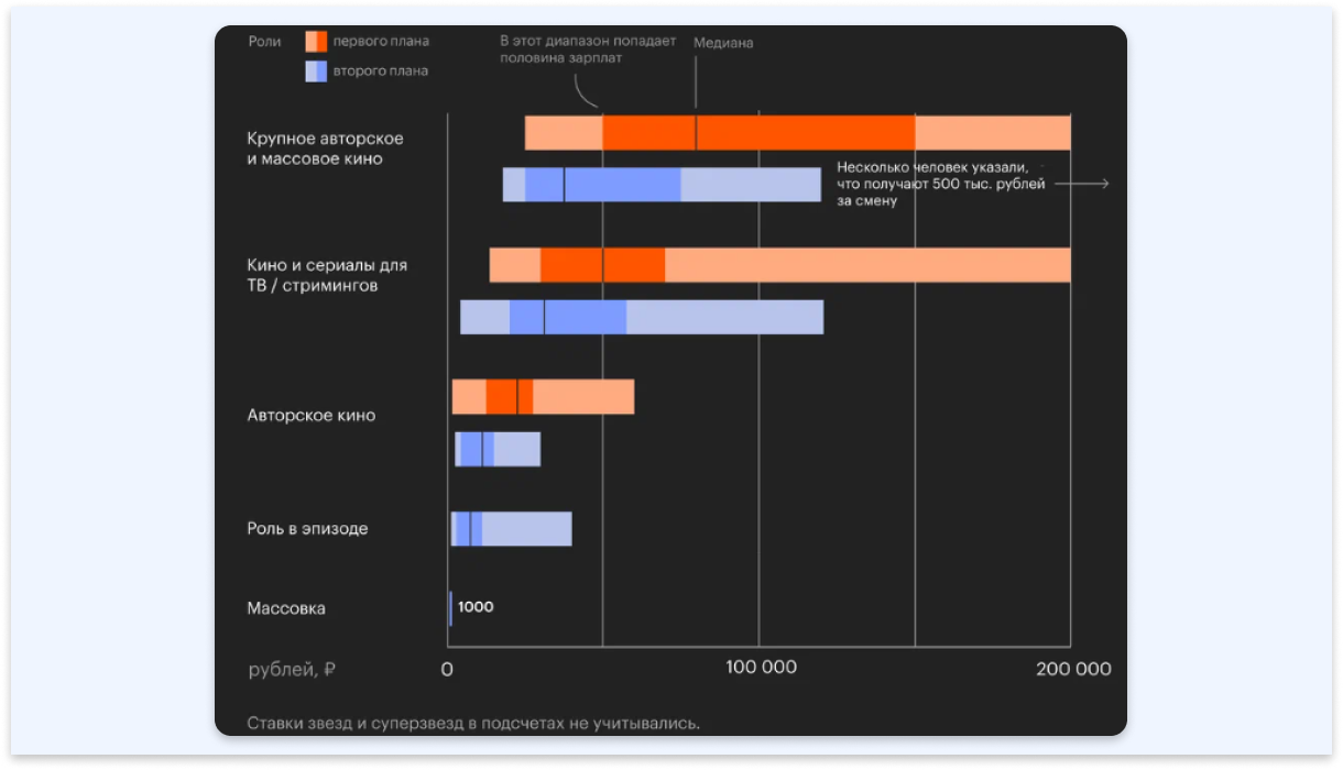 По данным исследования Московской школы кино и «Кинопоиска», гонорар актёров в авторском кино варьируется: