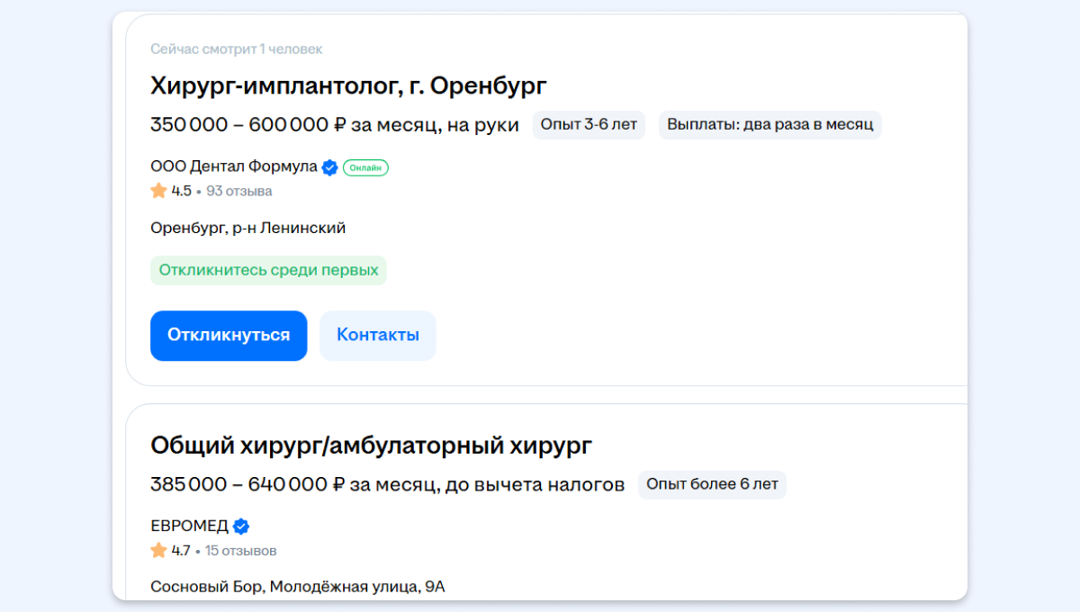 Сервис Dream Job считает иначе: аналитики изучают отзывы пользователей. Судя по этим данным, российские хирурги в 2026 году зарабатывают в среднем 110 тысяч рублей. Чаще всего зарплаты специалистов находятся в диапазоне от 70 до 150 тысяч рублей. Минимальный зафиксированный доход — 49 тысяч рублей, максимальный — 400 тысяч.